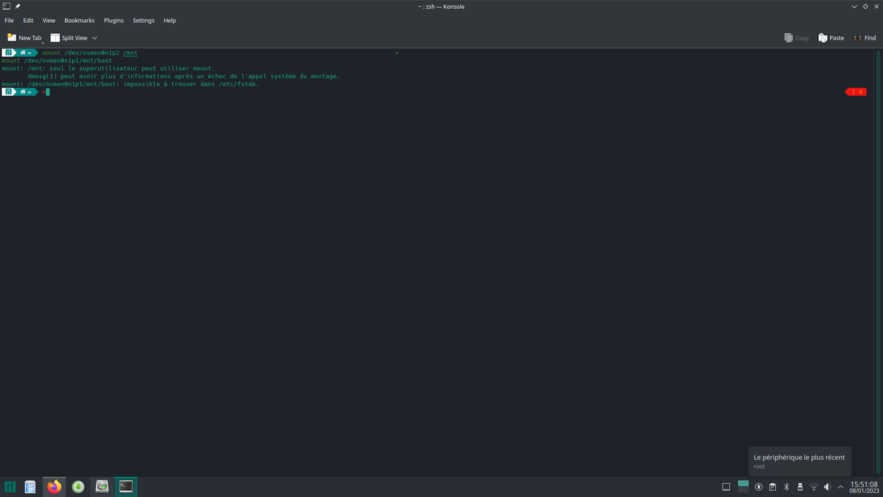 mount: /dev/nvmen0n1p1/mnt/boot: impossible to find in /etc/fstab.