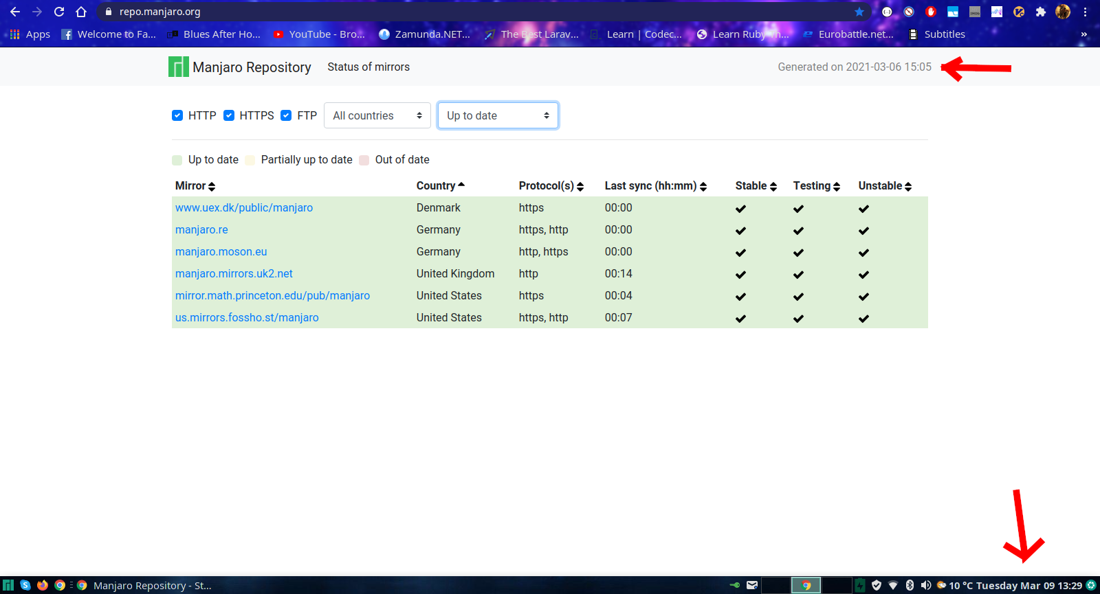 The thing is also, now if you create a custom list with -c Germany for example, it will not generate a proper list: The status file (https://repo.manjaro.org/status.json) that is being used by pacman-mirrors is outdated. Same goes for the status page itself.