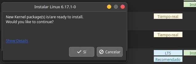 Hola saludos. Hace unos mi mujer fue a instalar el kernel de la imagen, y como le salio en ingles, no lo instalo porque no entiende lo que pone.
