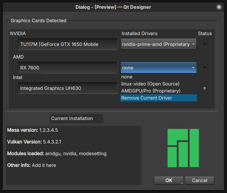 Besides for NVIDIA proprietary drivers, for which it is very helpful for the non terminal people, I don’t think this GUI is useful at all now (especially if you’ll drop the Realtek driver, what other external drivers are managed here?). If you’re going to remake it, I would guess just focus on NVIDIA proprietary drivers management.