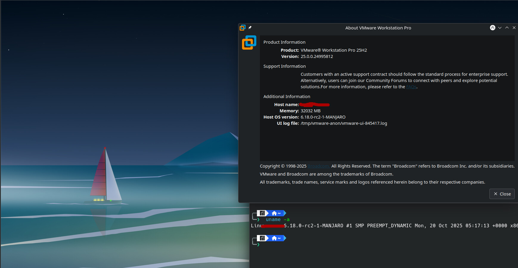 [2025-10-20T08:15:18+0200] [ALPM] upgraded vmware-workstation (17.6.4-6 → 25H2-3)[2025-10-20T08:15:21+0200] [ALPM] running ‘70-dkms-install.hook’…