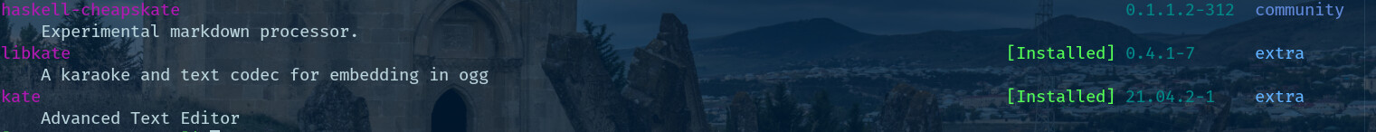 pamac search --color kate now gives the output shown in