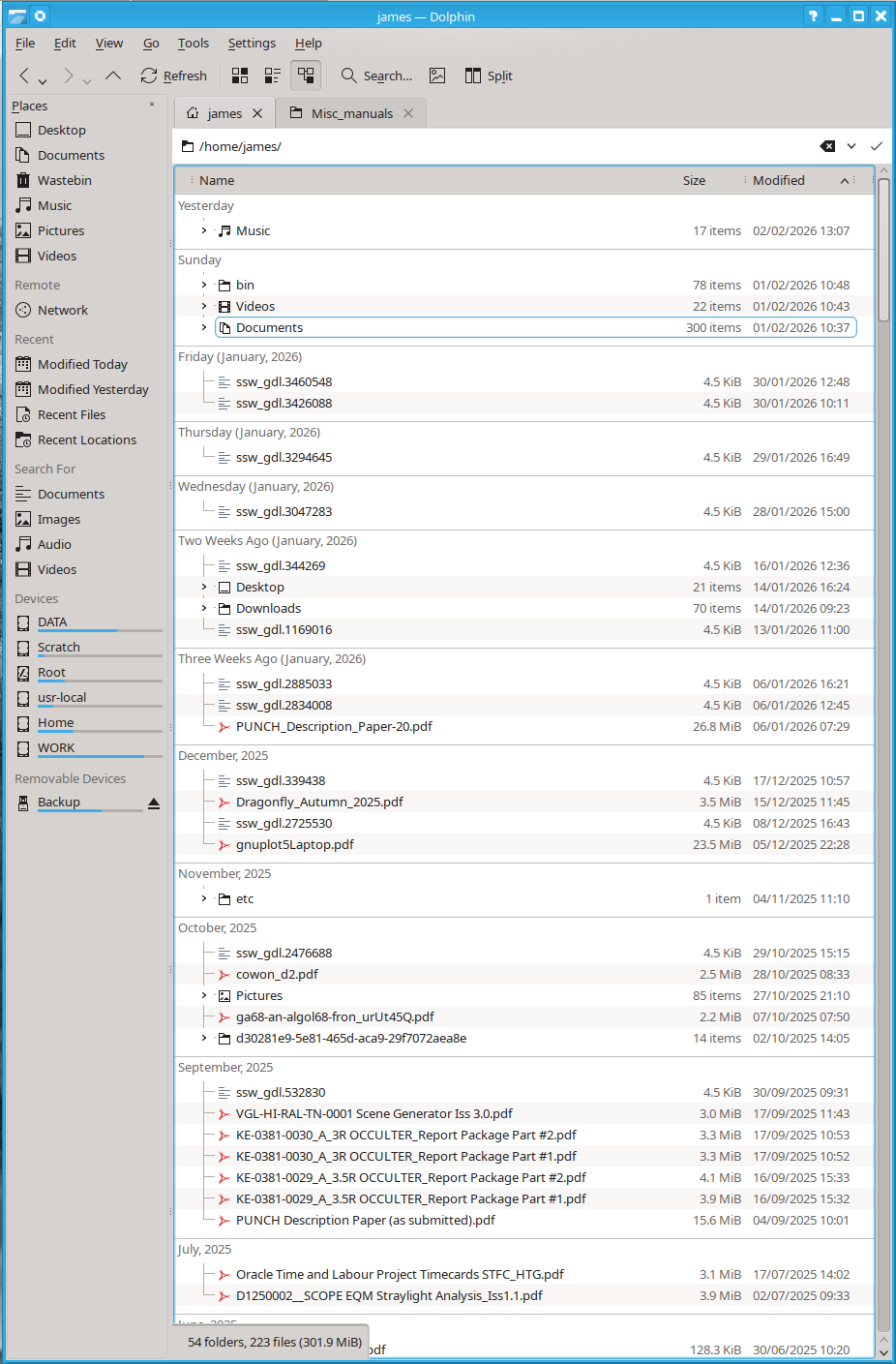 In my home directory, however, the sort is subdivided by days or by initial letter as seen here: