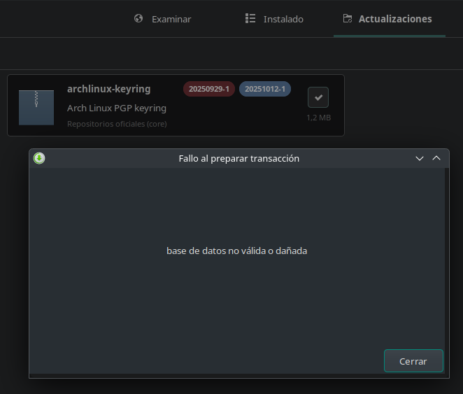 base de datos no válida o dañada