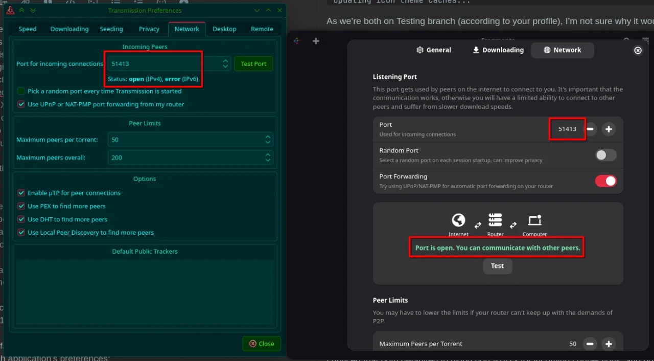 udp UNCONN 0 0 [2003:ed:d71f:eb00:5da9:140f:dcae:2531]:51413 [::]:* users:(("transmission-da",pid=55471,fd=16))