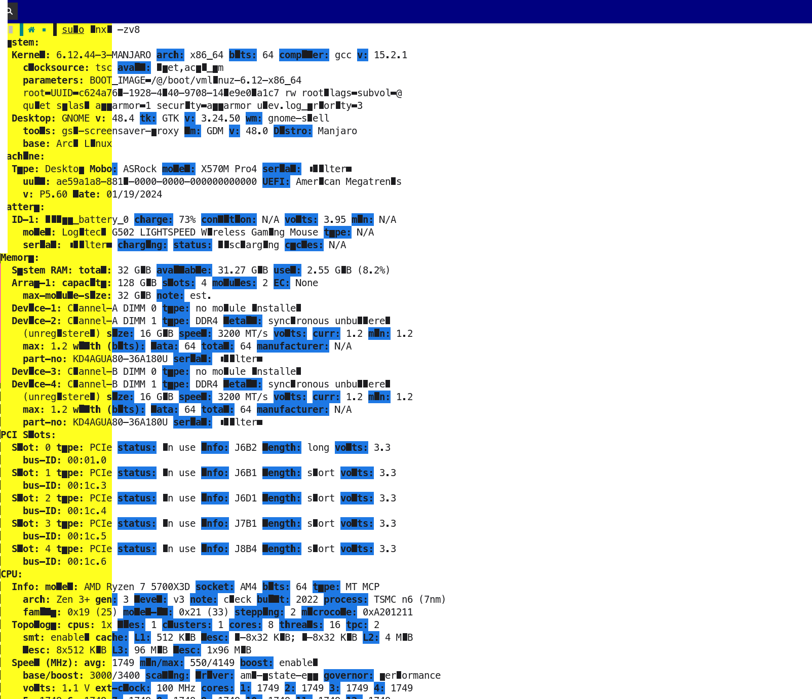 Kernel: 6.12.44-3-MANJARO arch: x86_64 bits: 64 compiler: gcc v: 15.2.1