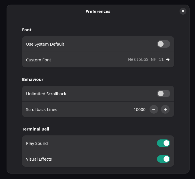 When your terminal app is gnome-terminal, for instance, the settings might be accessible via the gnome settings or via dconf-editor.
