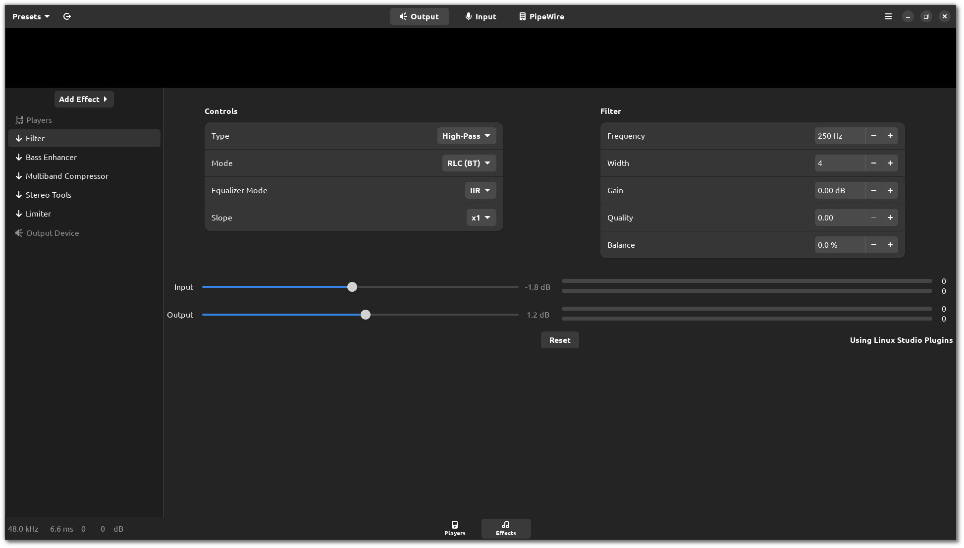 We will be using an (Arch/Manjaro based) as the example, but this should apply to just about every other Linux distro out there, so letâs get started. Most of the tuning of the sound is derived from the help section in easyeffects package and I know itâs a boring man page to look at, but it offers a wealth of information on how to make your system sound much better than a base install, so read it when you can, open easyeffects and hit F1. You must remember that audio configuration for most Windows machines is done by the hardware manufacturers and you cannot expect a Linux Distro to be able to ship a Distribution with every sound hardware pre-configured for every machine out there.