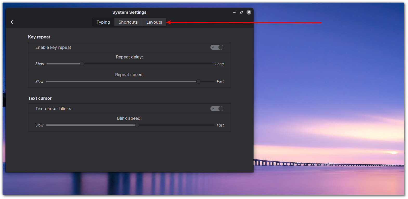 Go to the Layouts tab (or Input Sources / Layouts depending on version).