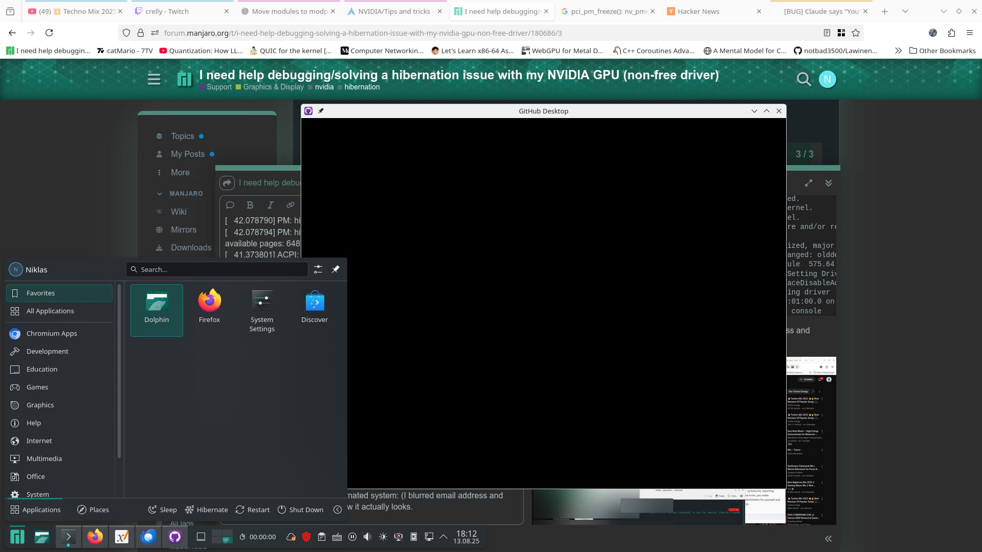 For some reason my PC has issues with sleep and hibernating so I recently tried to fix at least the hibernating issue since even my Windows on another drive struggles with sleep (apparently a CPU problem, PC power LED blinks, when woken up PC starts but no [display] output).