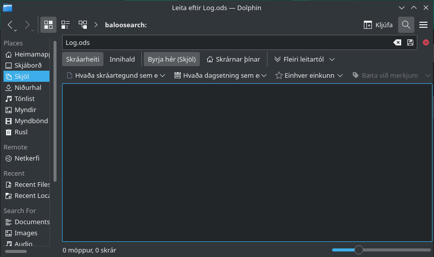 I was just noticing that when I search for files through launcher, it doesn’t return any results (except for Manjaro documentation). Dolphin does not find the files I search for but baloosearch filename.ending finds the files OK.