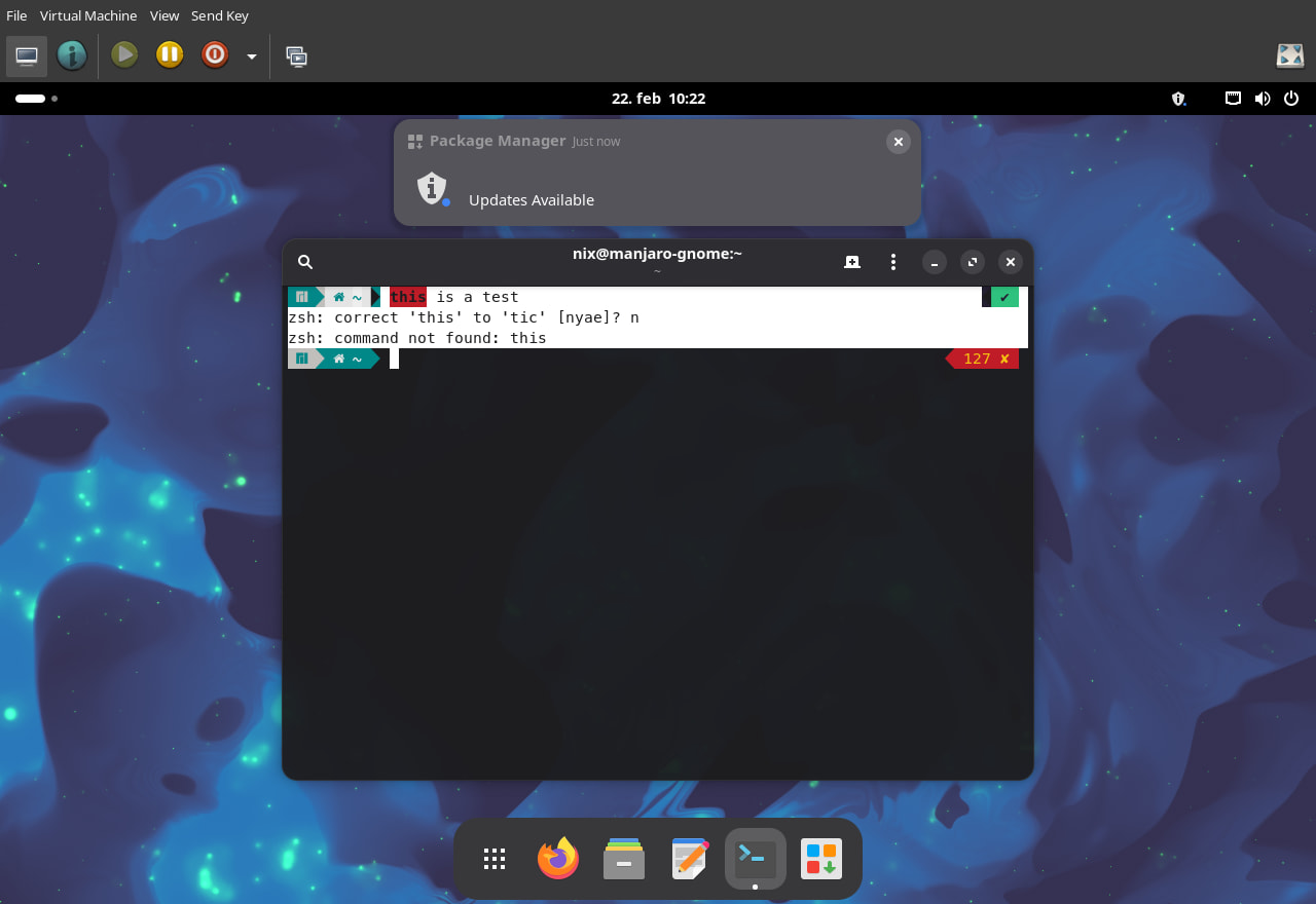 I have the same packages as @Teo (the only difference is X11 vs Wayland); so maybe there is some difference in the vm created with virtual manager.