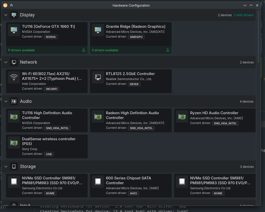 When more modules/packages/drivers are available for detected hardware, does it show what is being used now?, so the user has a choice.