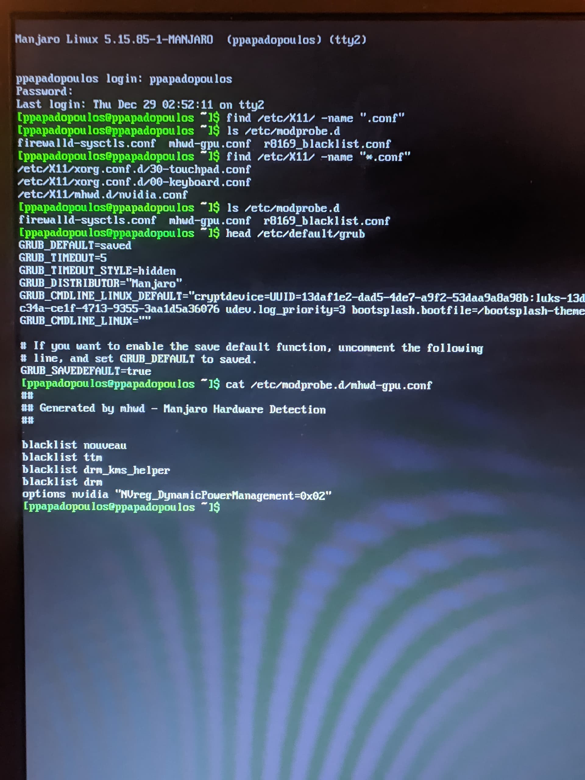 ok, no suspicious kernel parameters… and nvidia is not blacklisted… lets reinstall it again;