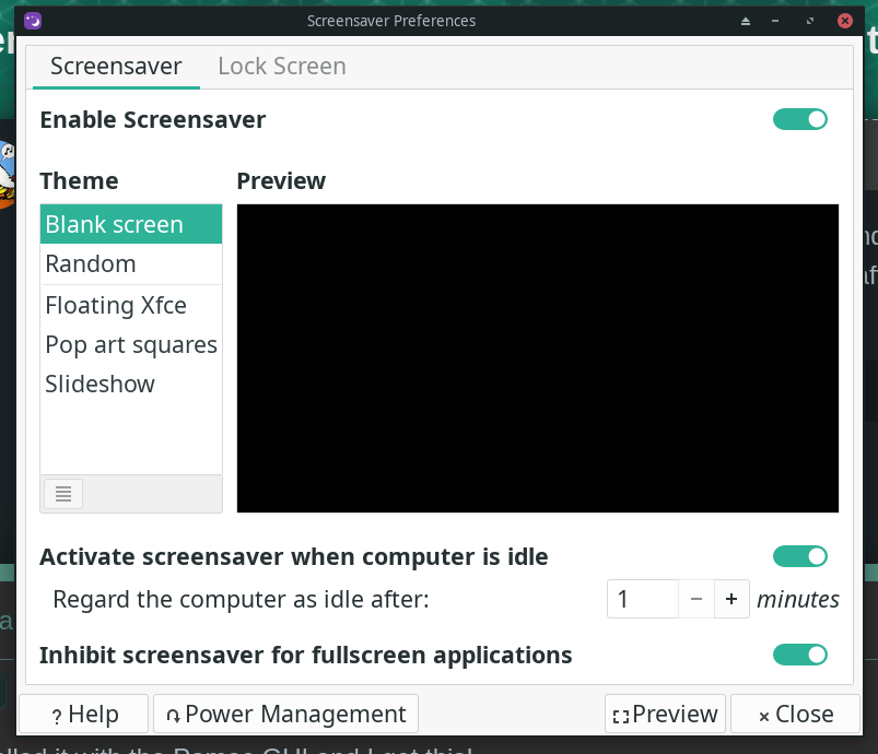 I am pulling my hair out trying to stop my laptop screen from blanking after 5 minutes of inactivity. I read one post saying that it was solved but do not know HOW they actually solved it. I remember one page that mentions “Call xfce4-screensaver-preferences and disable the screensaver” , somehow, but I do not know how to do that: