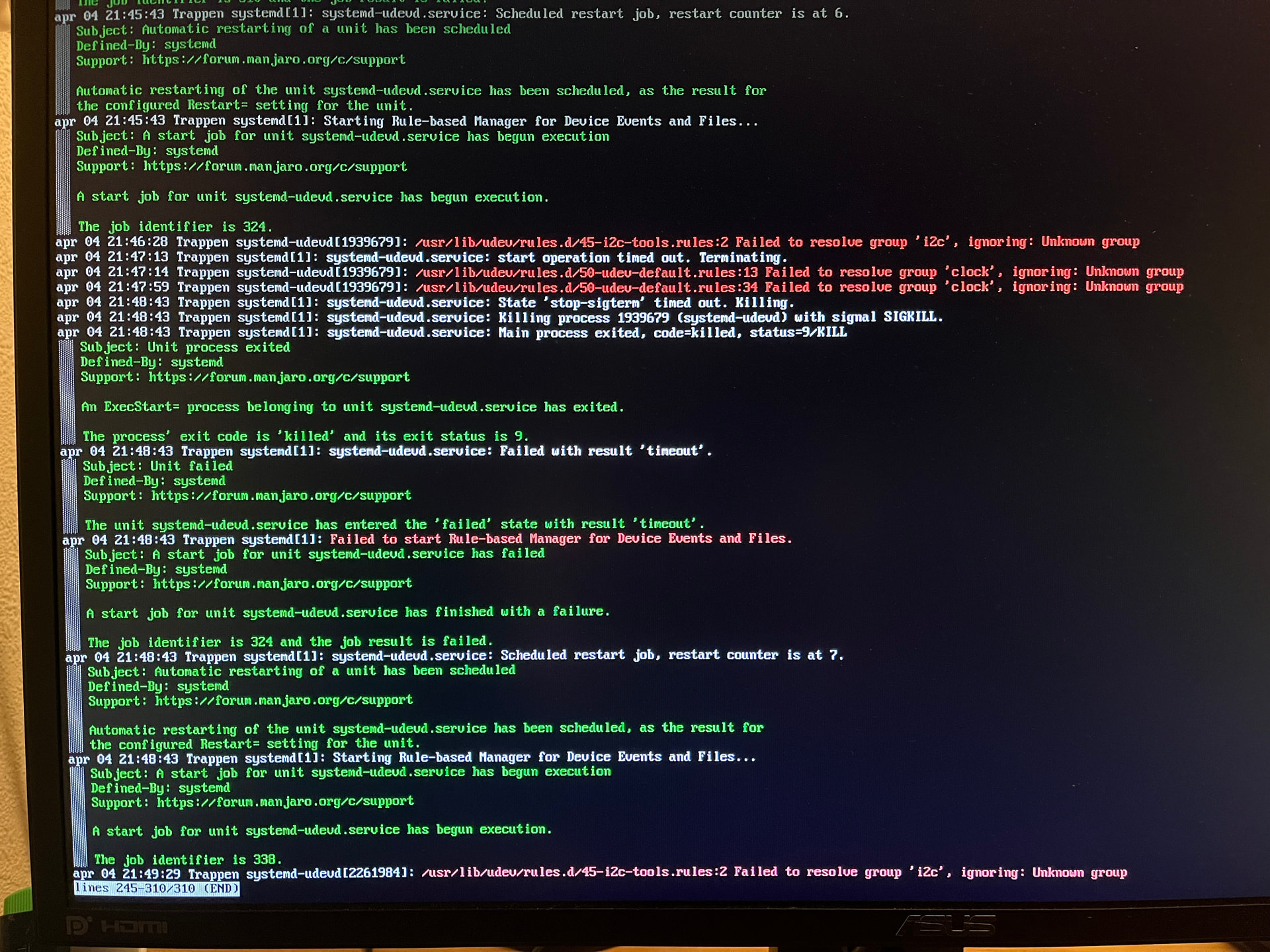 About a month ago, beginning of march, I noticed I had a lot of available upgrades (some 300 packages). Maybe foolishly I just pressed “Upgrade all” or whatever it said…and after that my system doesn’t boot.