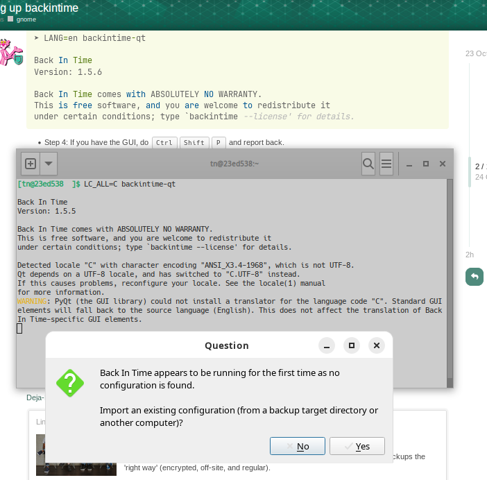 2 days ago I installed backintime on my laptop system and have been fairly pleased setting it up and let it do the first backups for different users ….
