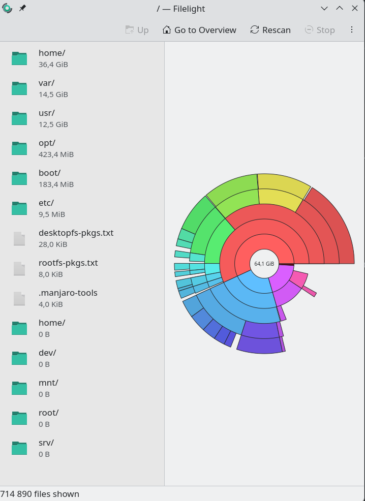 Dolphin shows 3,4 GiB free space, filelight about 50 GiB.