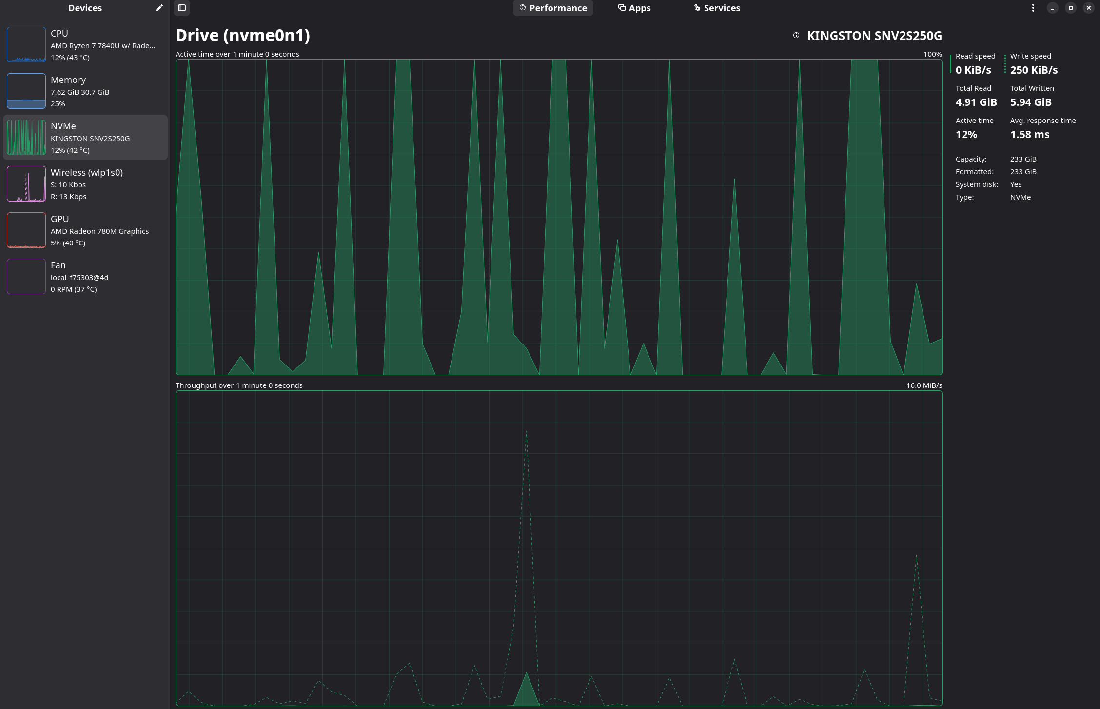 size: 232.89 GiB speed: 63.2 Gb/s lanes: 4 tech: SSD serial: <filter>