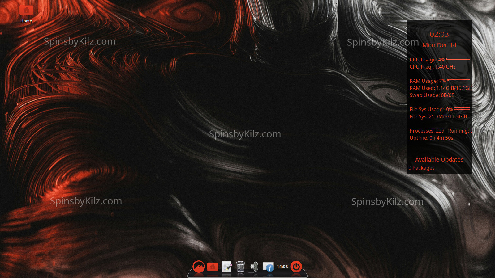 The SpinsbyKilz.com watermark is not in the installed OS. Cinnamon also has a minimal iso with a panel instead of a dock.All iso’s in this release include:
