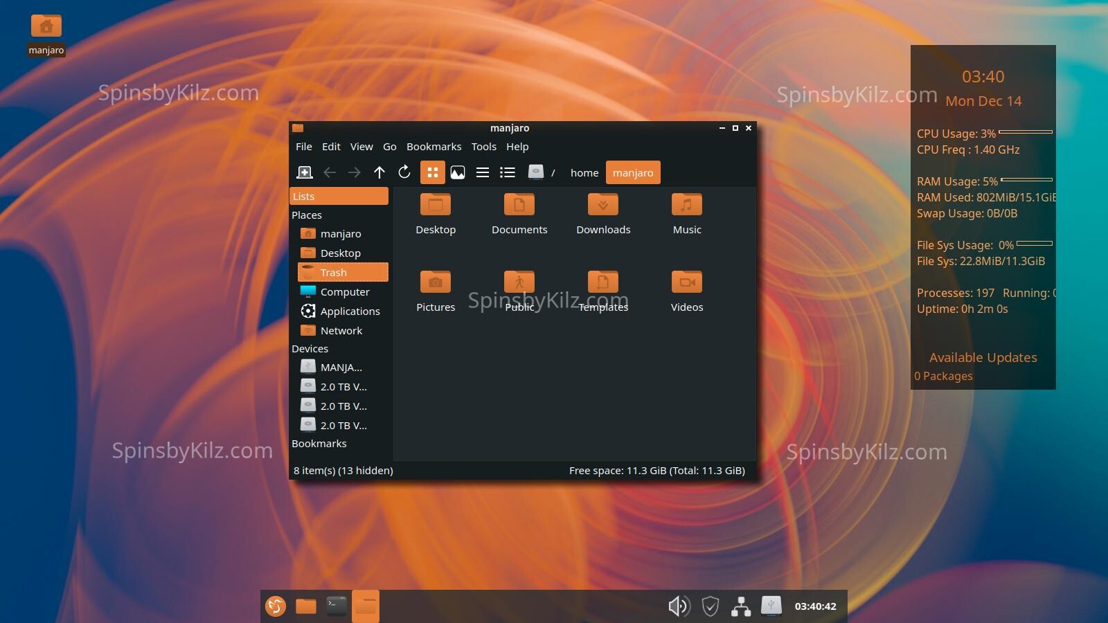 - The new SpinThemeDarkOramge12 matching Gtk and Kvantum themes in one package was used.
