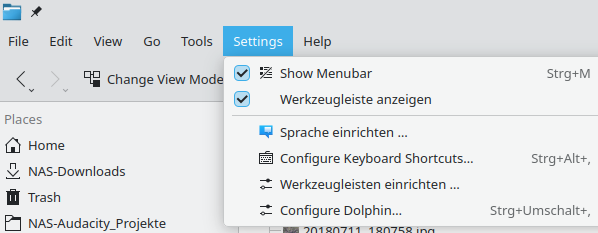 Menue entries are mixed in german and english