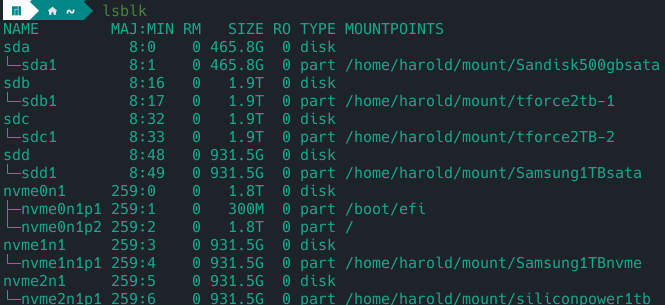 /dev/sdb1 on /home/harold/mount/tforce2tb-1 type ext4 (rw,relatime)