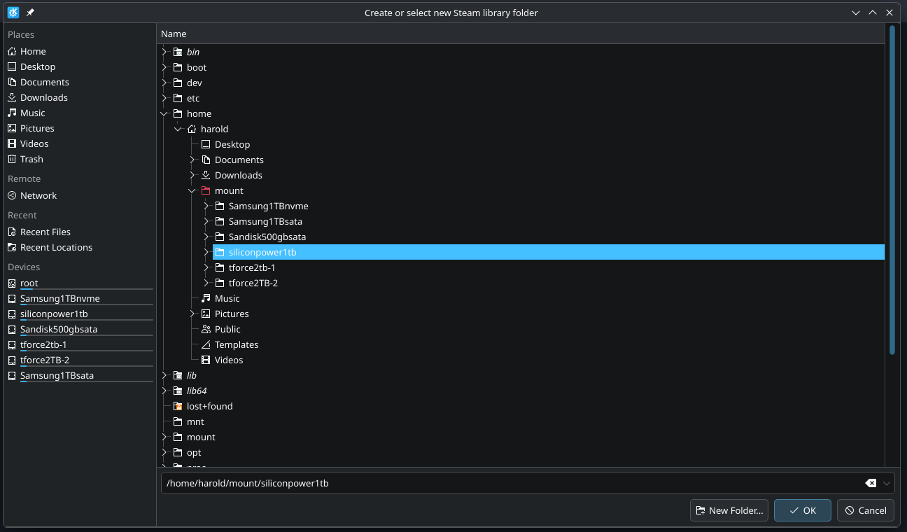 I only have one thing - I am curious about - when you do a simple list of block devices - the value in in RM column - if it is 1 (one) the device is seen as removable - just note if this make any difference for steam - if the column is one or zero.