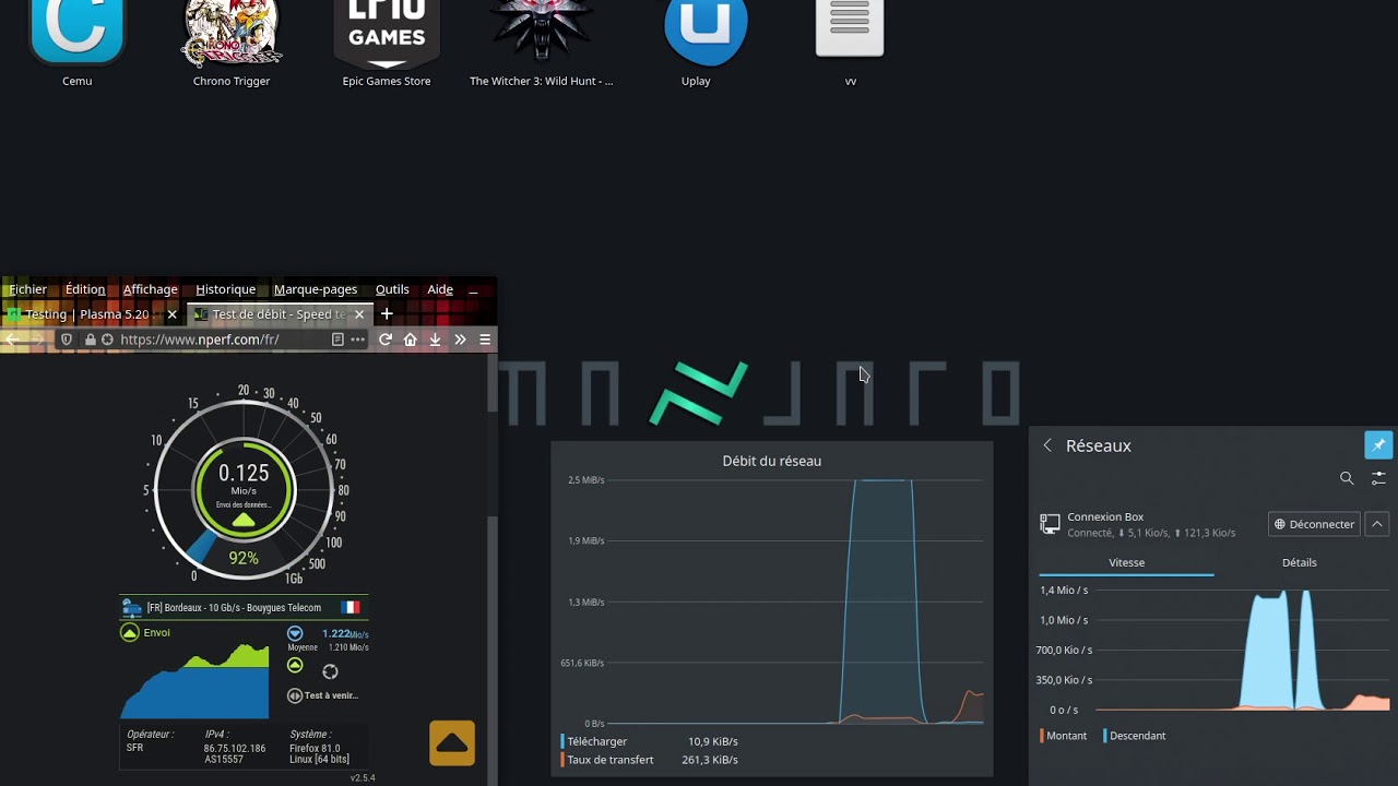 on ksysguard I have this (burst… the graph is not accurate… the digital value displayed is 0 or or around 130Mib/s during the test) if you look the average it’s about 60MiB/s (don’t forget you have a router/modem between)