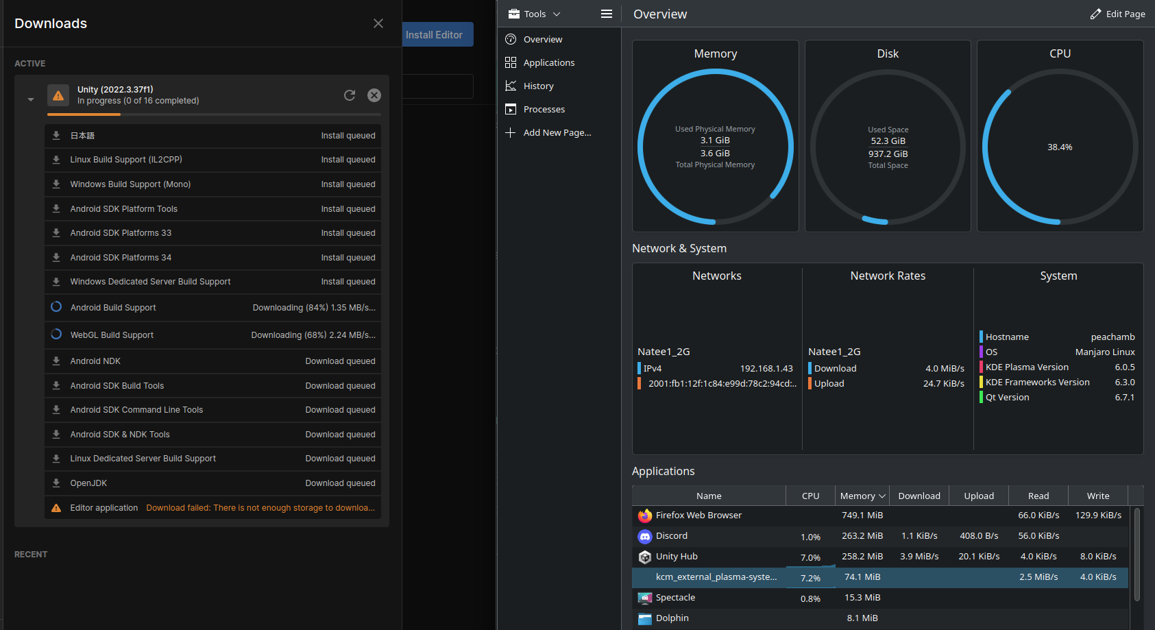 Furthermore, the available disk space in Plasma’s System Monitor is incorrect — there’s a bug in there which randomly becomes active and misrepresents the amount of available storage. As an example, I have a 1 TiB SSD and a 750 GiB HDD in this machine, but it tells me I have 3.5 TiB of available space.